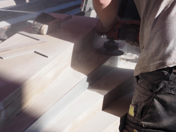 Mit Feingefühl und einer Menge Erfahrung geht das STEINWERKSTATT weinmann- Team für die Kunden ans Werk. Erst wenn die letzte Fuge millimetergenau passt, ist das Werk komplett.