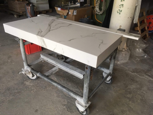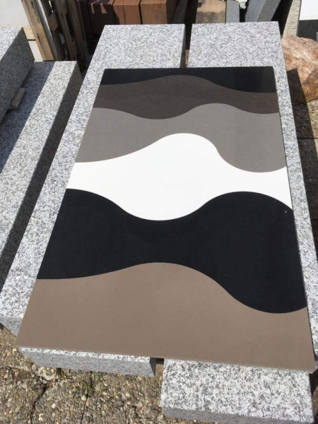 Küchenarbeitsplatten aus Stein mit einer Wasserstrahl-Technik herstellen, Fliesen und Platten von 10 x 10 cm bis großformatig 320 x 160 cm zuschneiden, einem Naturstein eine besondere Oberfläche verleihen - wir realisieren die unterschiedlichen Projekte.